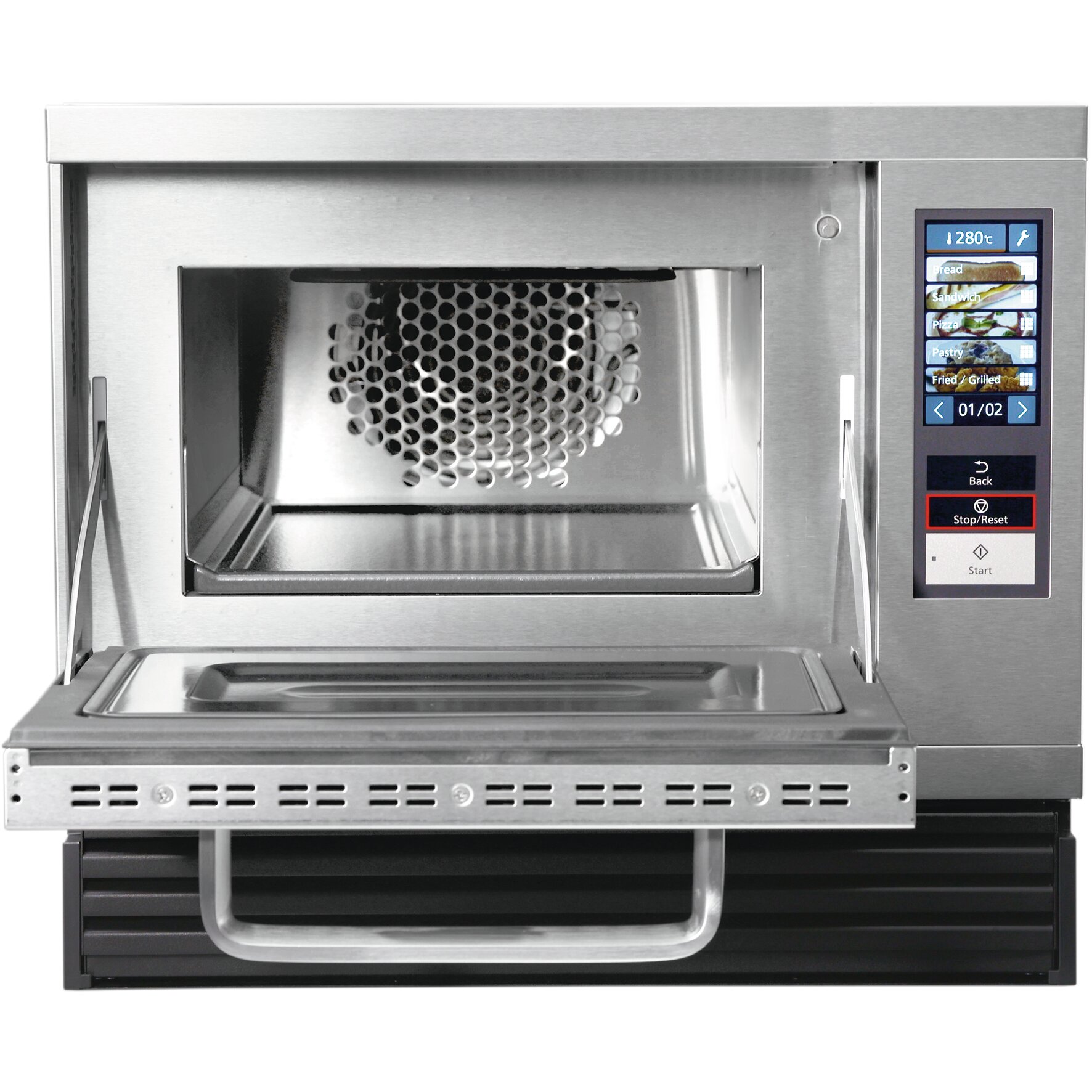 › Gehäuse und Garraum aus Edelstahl und mit Keramikboden