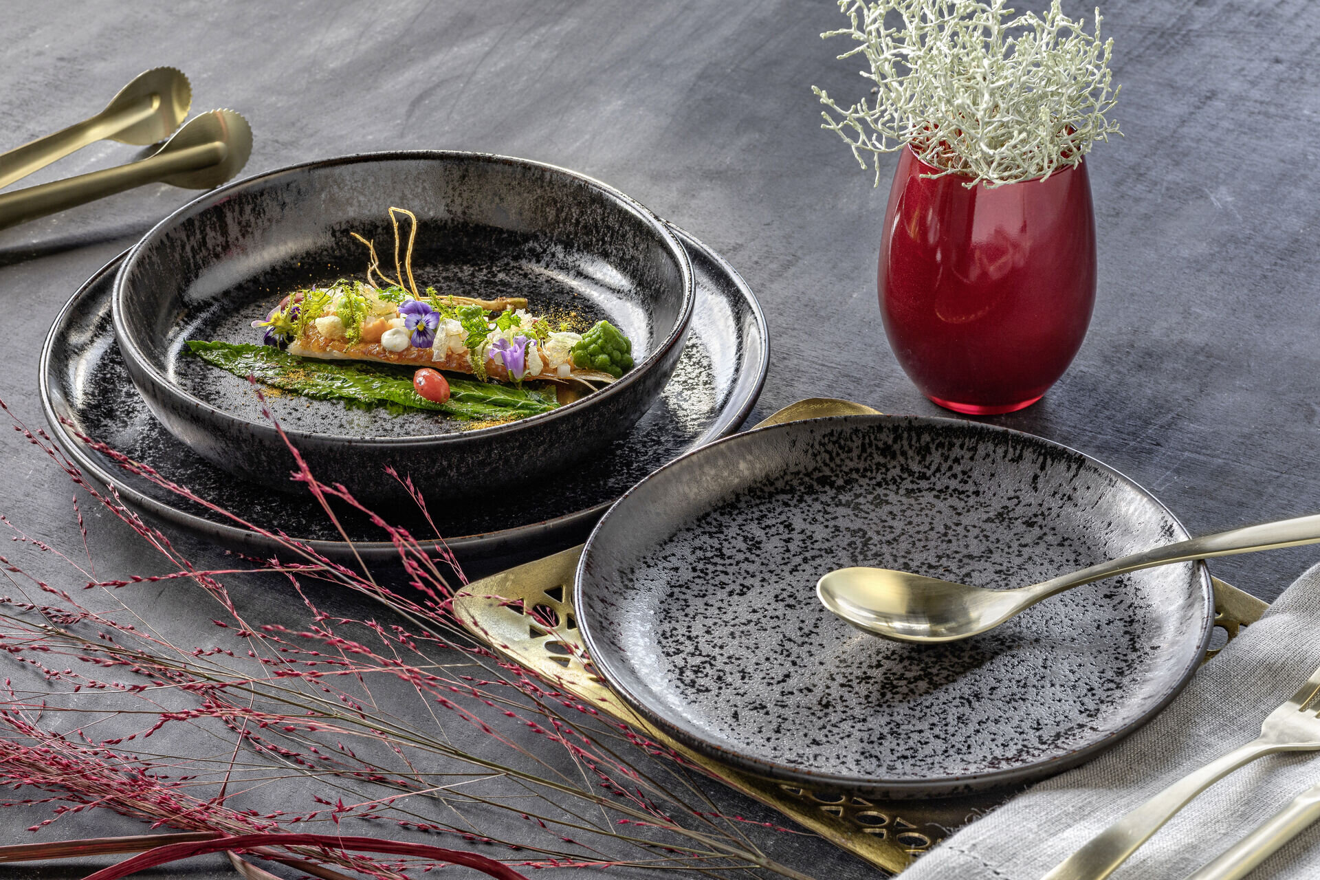 Porzellanserie „Ebony" Teller flach 19x16cm